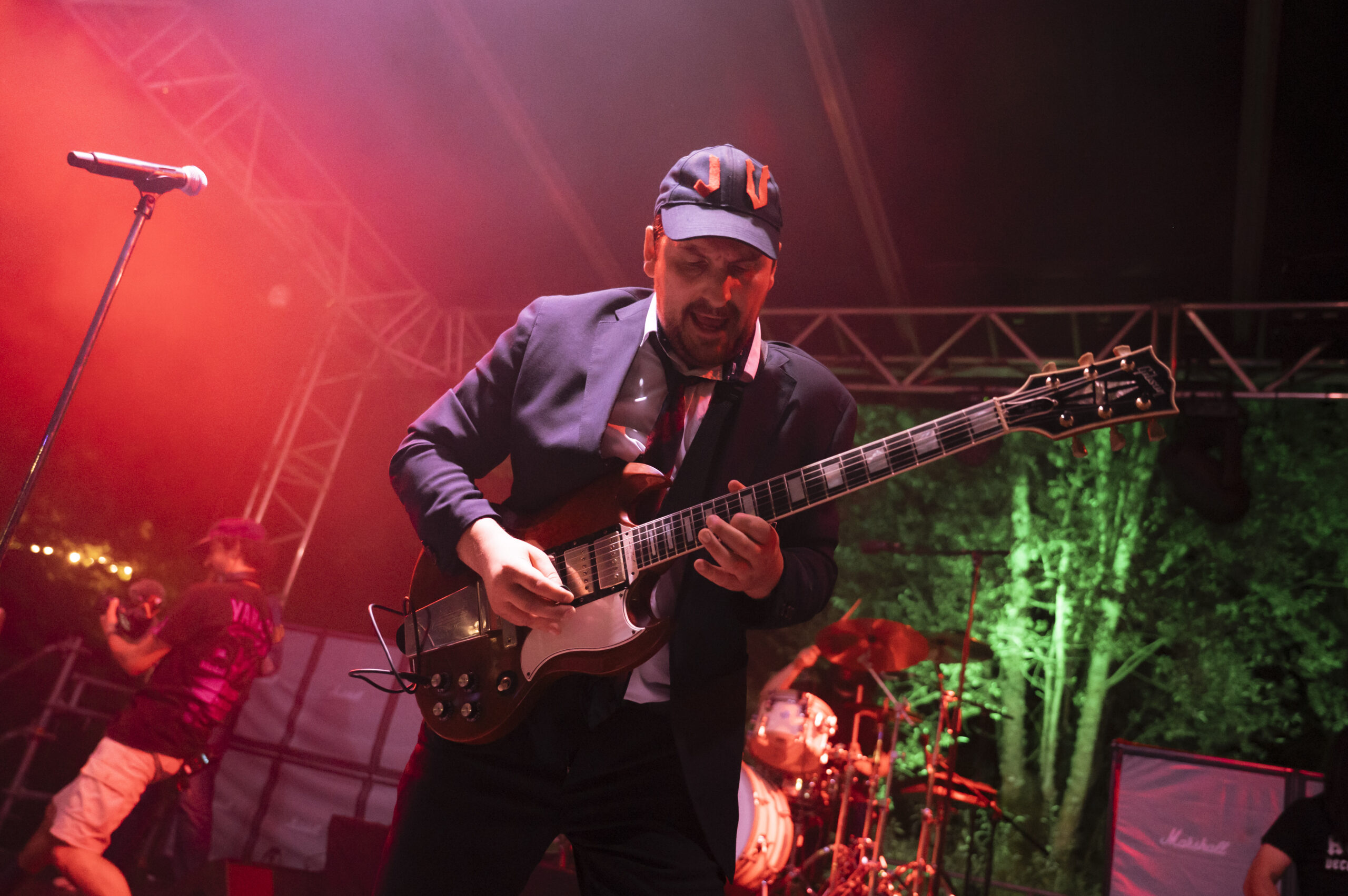 Le vendredi 18 juillet 2025, le festival a laissé place à une parenthèse aussi électrique qu’humoristique avec le passage remarqué d’ AC/DÇU. Le groupe de « Tribute » a investi la scène avec une mission claire : rendre un hommage vibrant, mais non sans une pointe d’autodérision, aux géants du rock australien.
